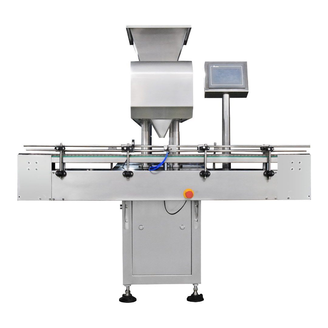 Esta evasadora e contadora tem por função contabilizar e envasar de pequenas a grandes quantidades de cápsulas e demais produtos, de modo automático e contínuo. Possui 12 canais vibratórios, alto nível de automação, IHM, função de contagem, velocidade de produção ajustável, parada automática etc.